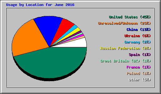| 18 | 69 | 0.36% | 69 | 0.74% | 2069 | 1.29% | 0 | 0.00% | 0 | 0.00% | 2 | 0.02% | 46.101.159.171 |